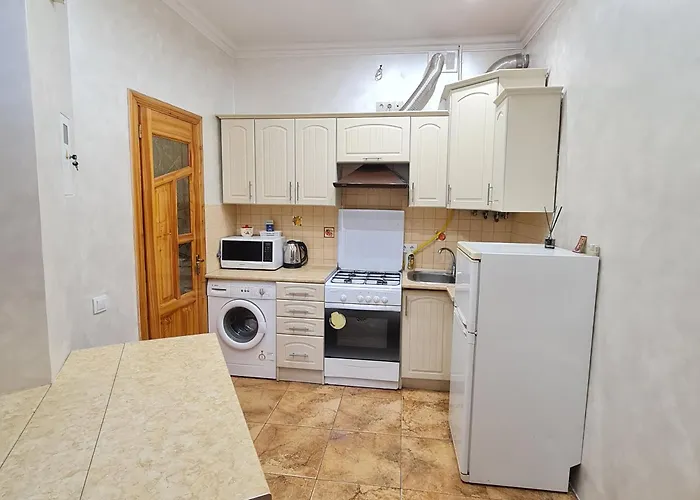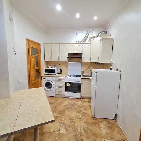 El apartamento dispone de una cocina completa para el autoservicio. El restaurante Lvivskiy Potyag, situado a una distancia moderada del establecimiento, sirve comida europea. La parada de autobús Tobilevycha está a unos 10 minutos a pie.